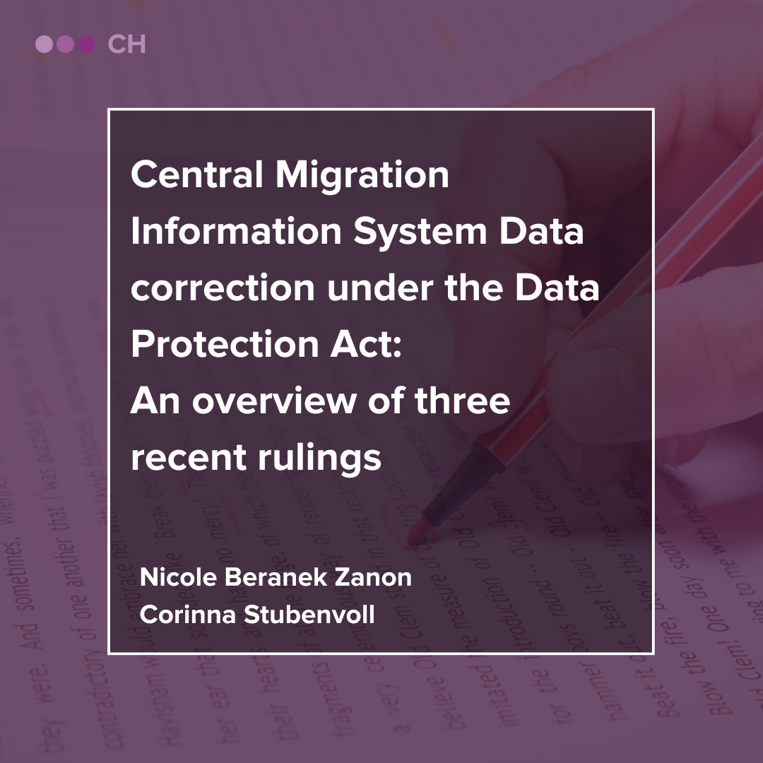 How can incorrect personal data in the Central Migration Information Systembe corrected? Three recent rulings by the Federal Administrative Court and the Federal Supreme Court provide answers and show how the Data Protection Act (DPA) is applied in practice.
