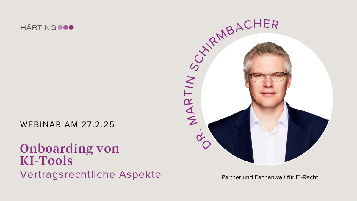 1975 in Berlin geboren, verließ Martin Schirmbacher die Stadt erst für ein High-School-Year in Lansing, Michigan. Studium und Referendariat hat er in Berlin und London absolviert. Als Student im dritten Semester begann Schirmbacher bei HÄRTING Rechtsanwälte. Vor dem Referendariat hat er sich mit einer Förderung durch die Deutsche Forschungsgemeinschaft in Erlangen promoviert. Seit 2005 ist Martin Rechtsanwalt und Partner bei HÄRTING. Seitdem hat er den IT- und Datenschutzbereich mit aufgebaut. Seit 2008 ist er auch Fachanwalt für IT-Recht und wurde hier 2020 als Anwalt des Jahres im Best Lawyers Ranking ausgezeichnet. Weitere Auszeichnungen erhielt er für seine Expertise im Technologierecht und Datenschutzrecht.