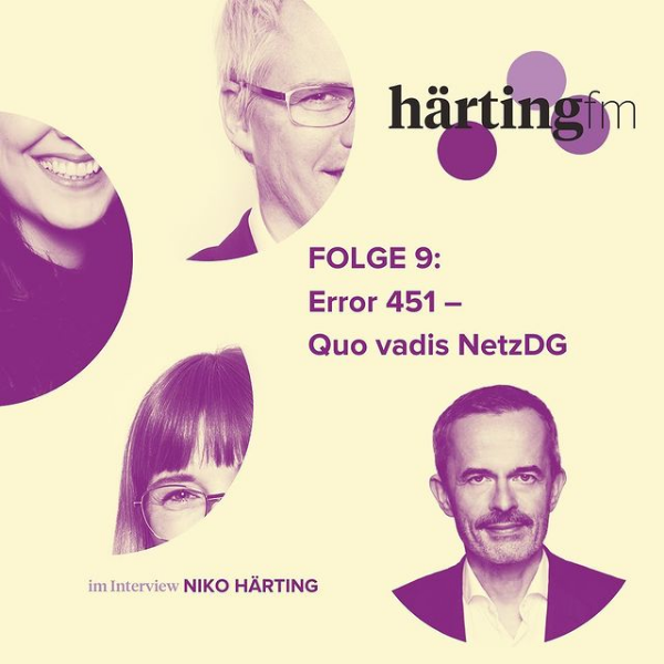 In dieser Folge von HÄRTING.fm sprechen Maya und Rika mit unserem Namensgeber über das Netzwerk-Durchsetzungsgesetz (#NetzDG), Meinungsfreiheit und Hass im Netz. Niko beschäftigt sich mit dem Thema schon lange und u.a. für den Deutschen Anwaltverein und im Rahmen des Gesetzgebungsverfahrens des Deutschen Bundestages dazu Stellung bezogen.