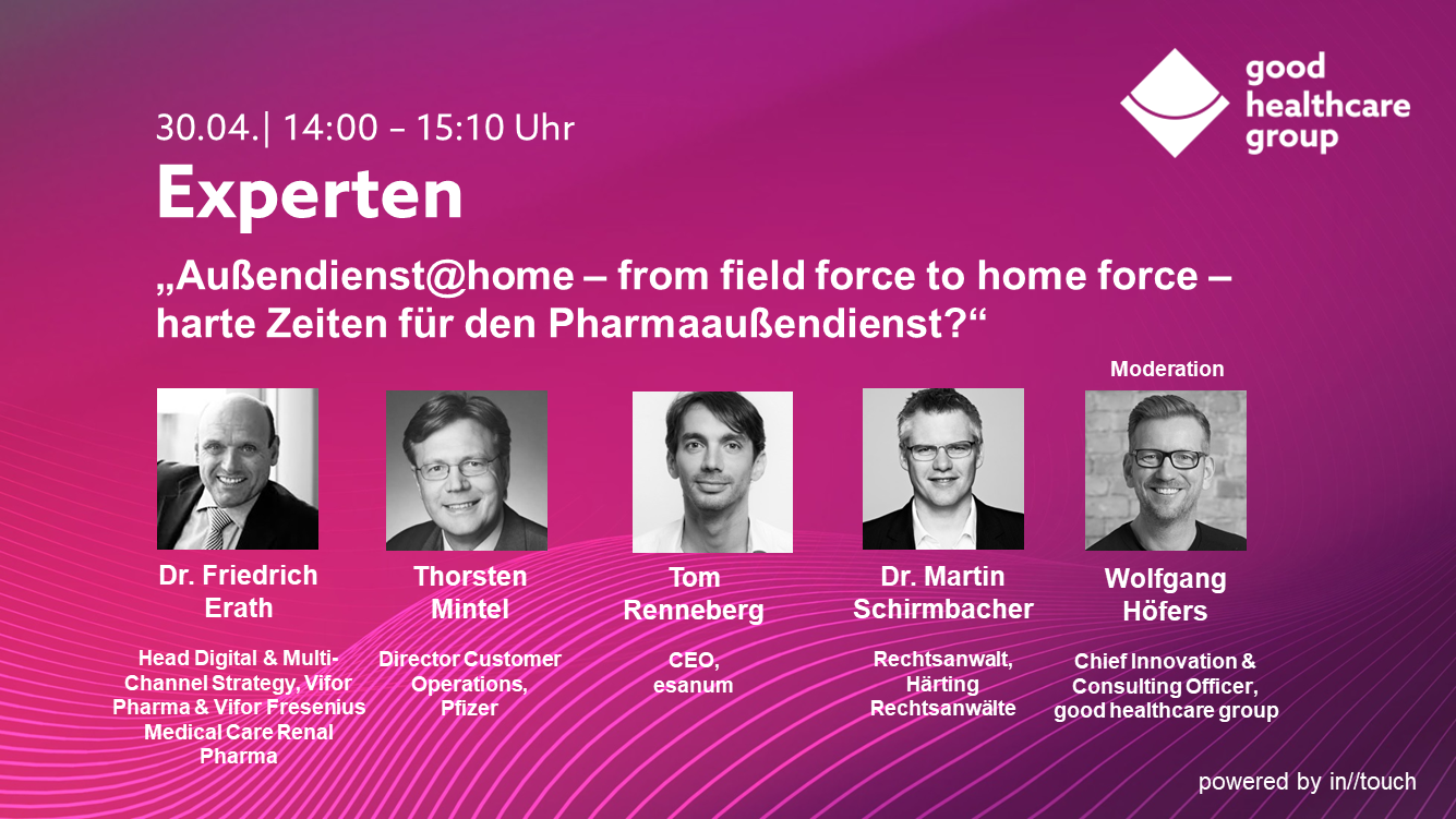- Moderation: Wolfgang Höfers, Chief Innovation & Consulting Officer, good healthcare group
