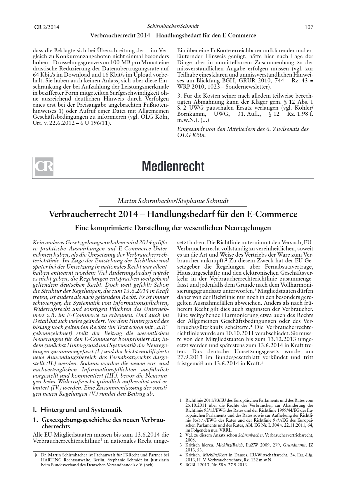 Stephanie Schmidt ist Justiziarin des Bundesverband deutschen Versandhandels (bvh). Den Aufsatz finden Sie in der CR 2014 auf den Seiten 107-119 (2. Heft).